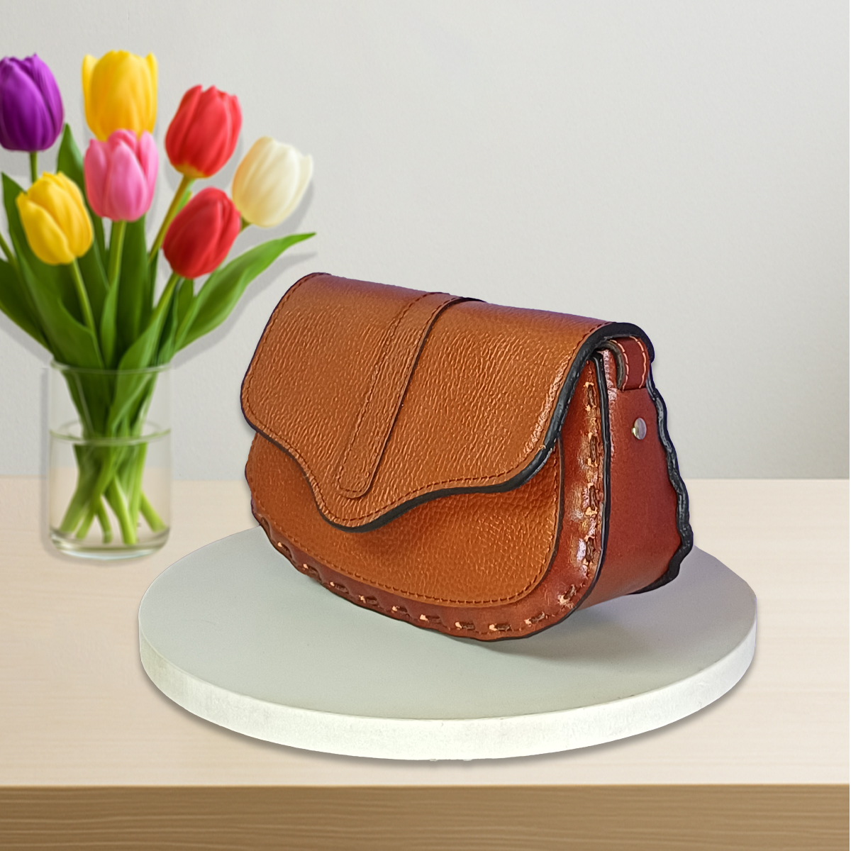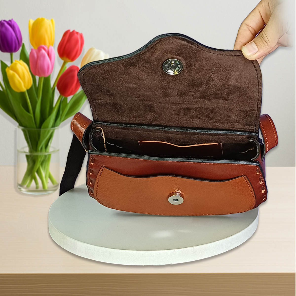 کیف زنانه دوشی چرم طبیعی مدل مهتاب نماد لطافت شب، سکوت و زیبایی آرام است.