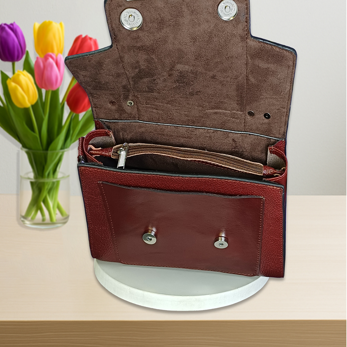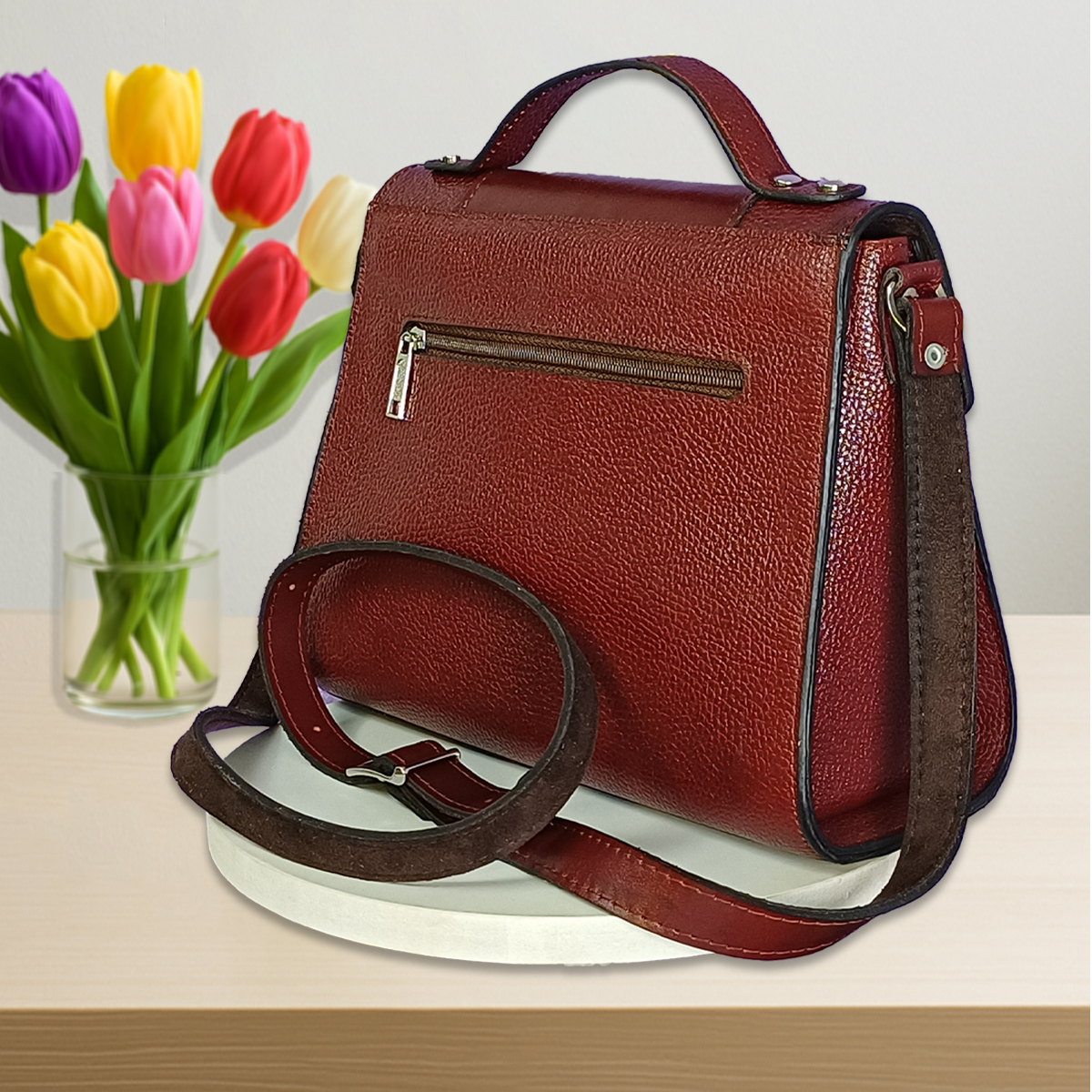این کیف زنانه با استفاده از چرم طبیعی گاو ساخته شده و تمام فرآیند دوخت آن با دستان هنرمندان تیم “فروشگاه اینترنتی خورشید” انجام شده است.